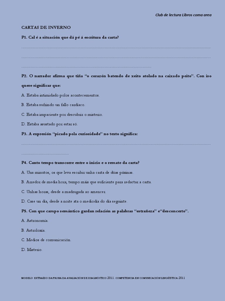 É un libro de misterio que me gustou especialmente porque te incita a seguir lendo. En 2007 salió la 23.ª edición. Cartas de inverno e un libro escrito por agustín fernández paz que pode considerarse un dos máximos expoñentes da literatura infantil e xuvenil galega actual. Mas talvez ainda não tenhas caído nas suas armadilhas, talvez ainda estejas a tempo de te salvares. Despois dunha longa estadía en québec.